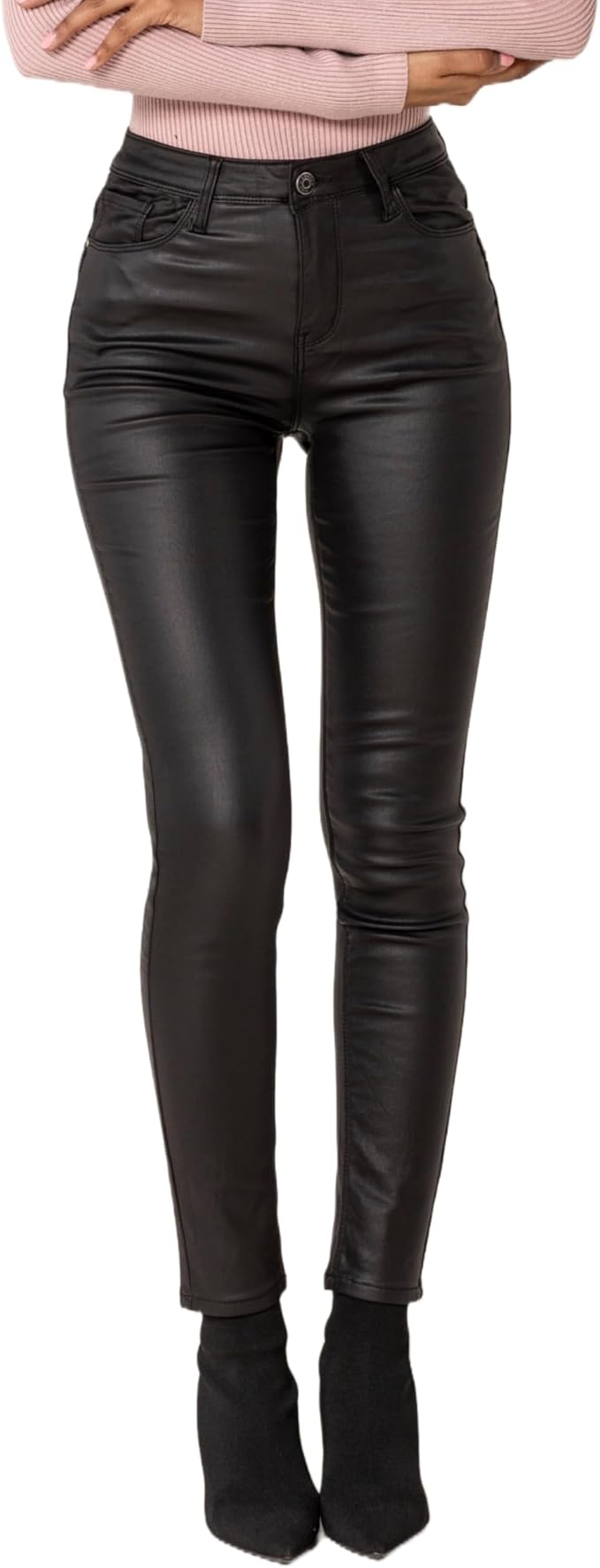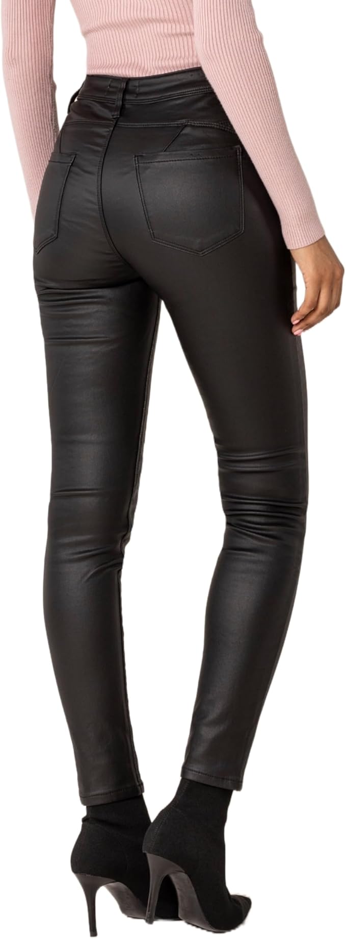 jeans stretch a vita alta, effetto pelle