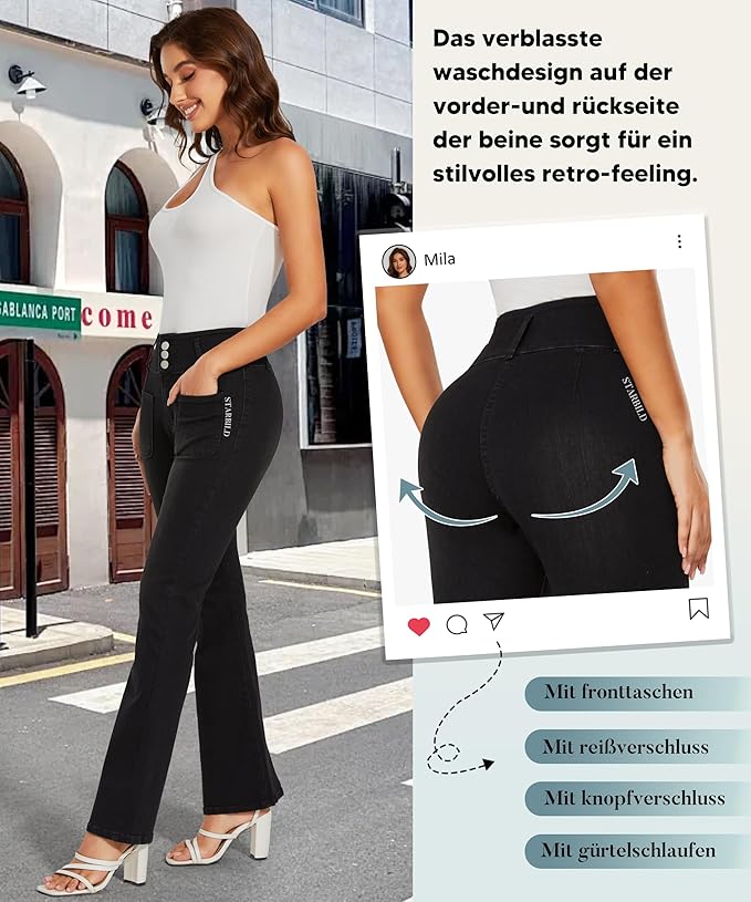 - PANTALONI IN DENIM BOOTCUT FIT ELASTICITÀ E LEGGEREZZA: il design a vita alta può nascondere la piccola pancia e sollevare i fianchi allo stesso tempo. La vita alta con cerniera, le tasche frontali