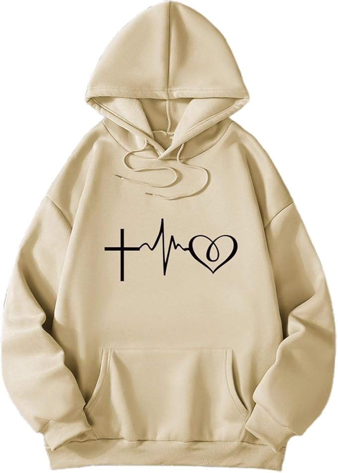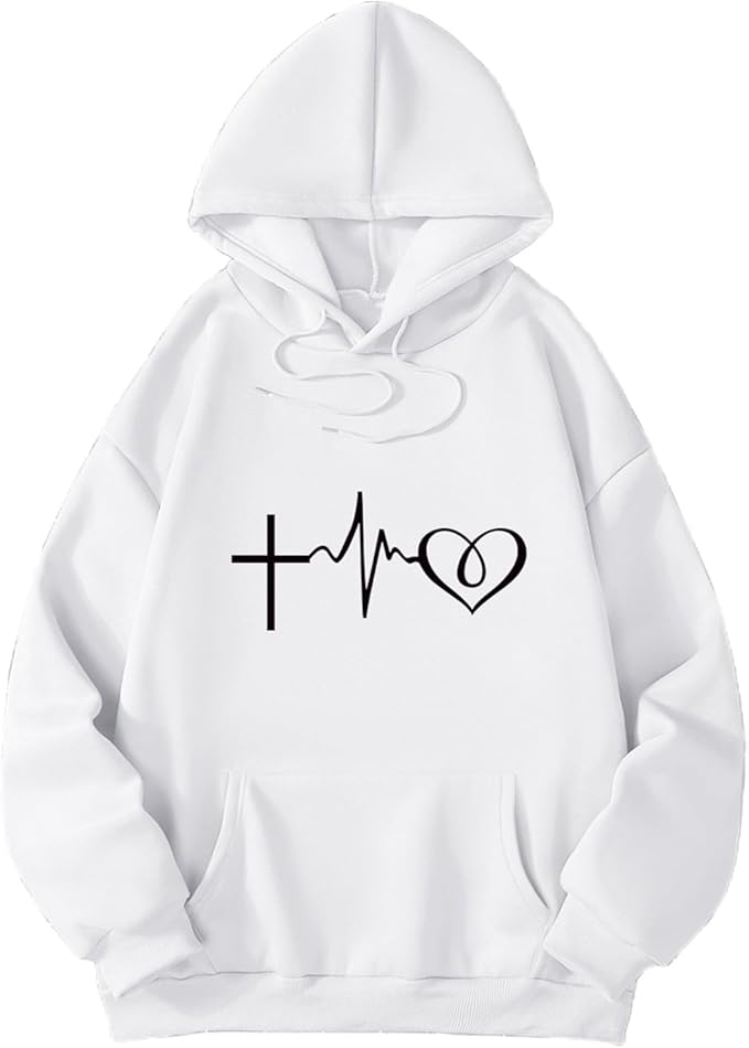 felpa con cappuccio da donna stampata con vestibilità ampia e scollo a V, maglione casual a maniche lunghe per l'uso quotidiano