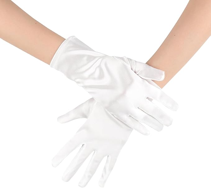 Guanti Corti in Raso da Donna da Opera per Tea Party, Banchetti, Feste, Matrimoni e Sfilate