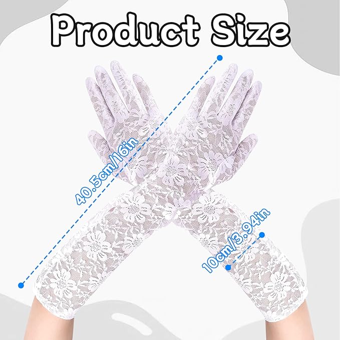 Guanti da sposa in pizzo da donna elastici in pizzo floreale Eleganti guanti in pizzo per serate, matrimoni, opera, tea party, ballo di fine anno