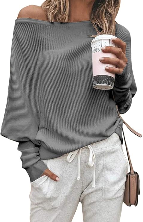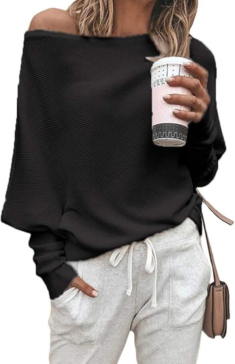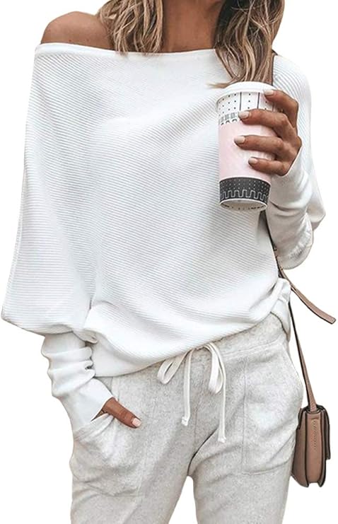 - Design Sexy, fuori spalla, maniche lunghe pipistrello, stile allentato, casuale e elegante.