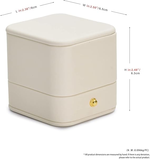 - Versatilità: la dimensione della scatola bianca per anelli è 6 x 6,5 x 6,3 cm/2,36 x 2,56 x 2,48 pollici. La scatola per anelli di nozze Papten può contenere la maggior parte dei tipi e dimensioni di anelli ed è abbastanza piccola da essere riposta in tasca e ti fa aspettare il perfetto momento di sorpresa.